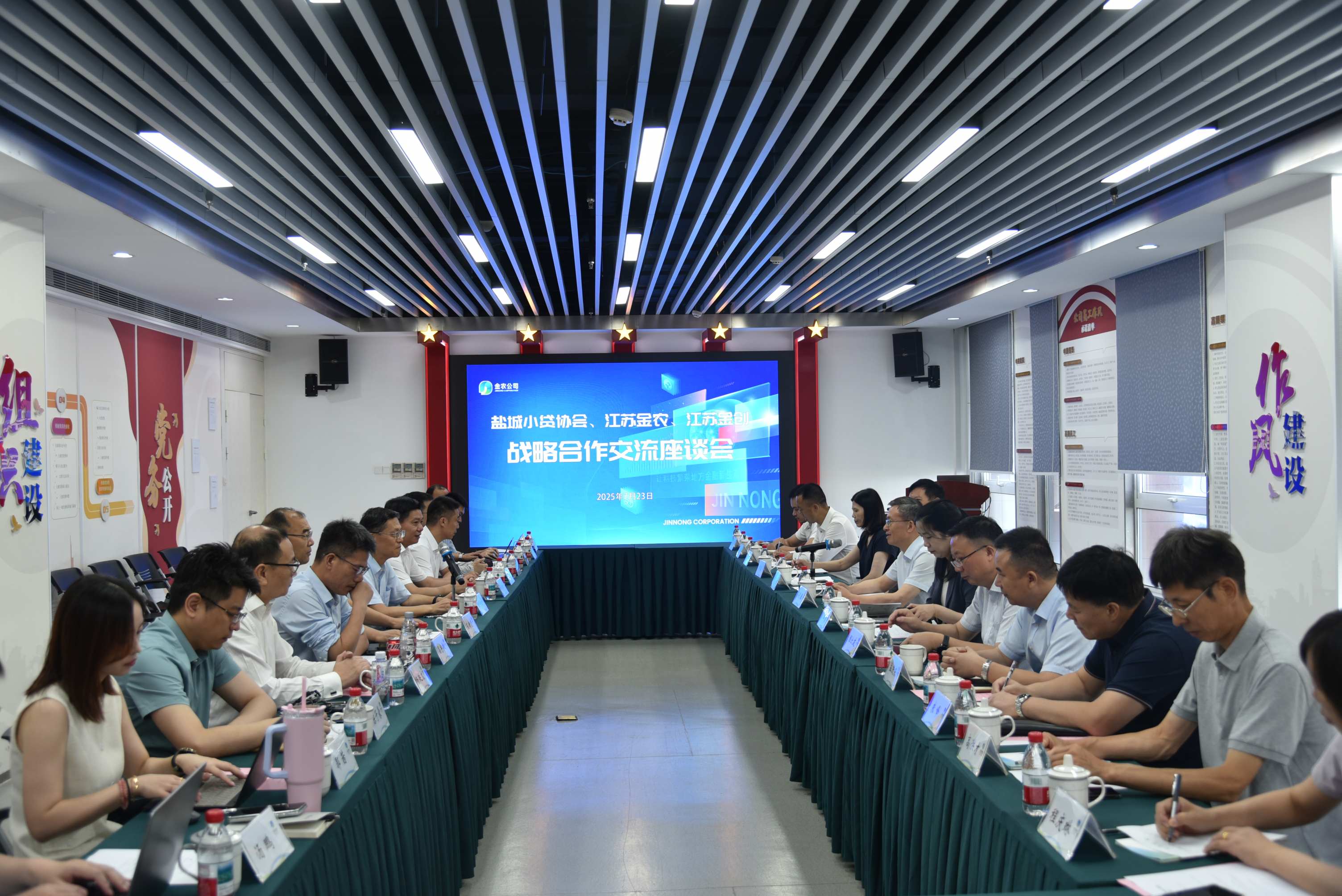 座谈会前,来宾一行考察了金农公司党建品牌建设和企业文化建设等情况,参观了金农公司党群活动阵地,就金农公司党支部、金创再担保公司党支部、盐城小贷协会党支部共同推动党建引领行业发展等达成共识,并签订了党建共建协议。(金农公司 张琨)